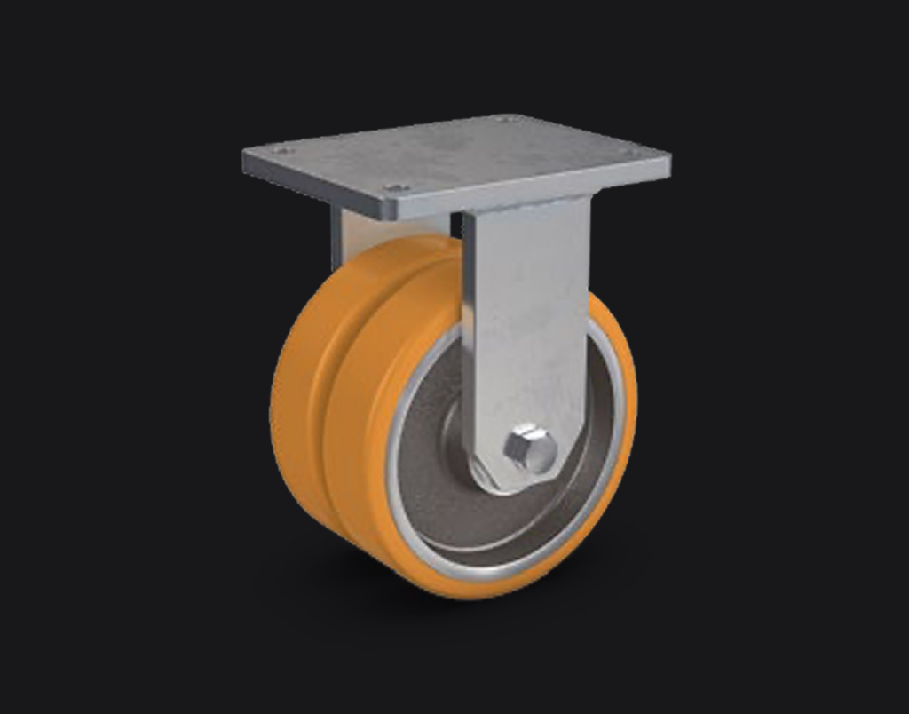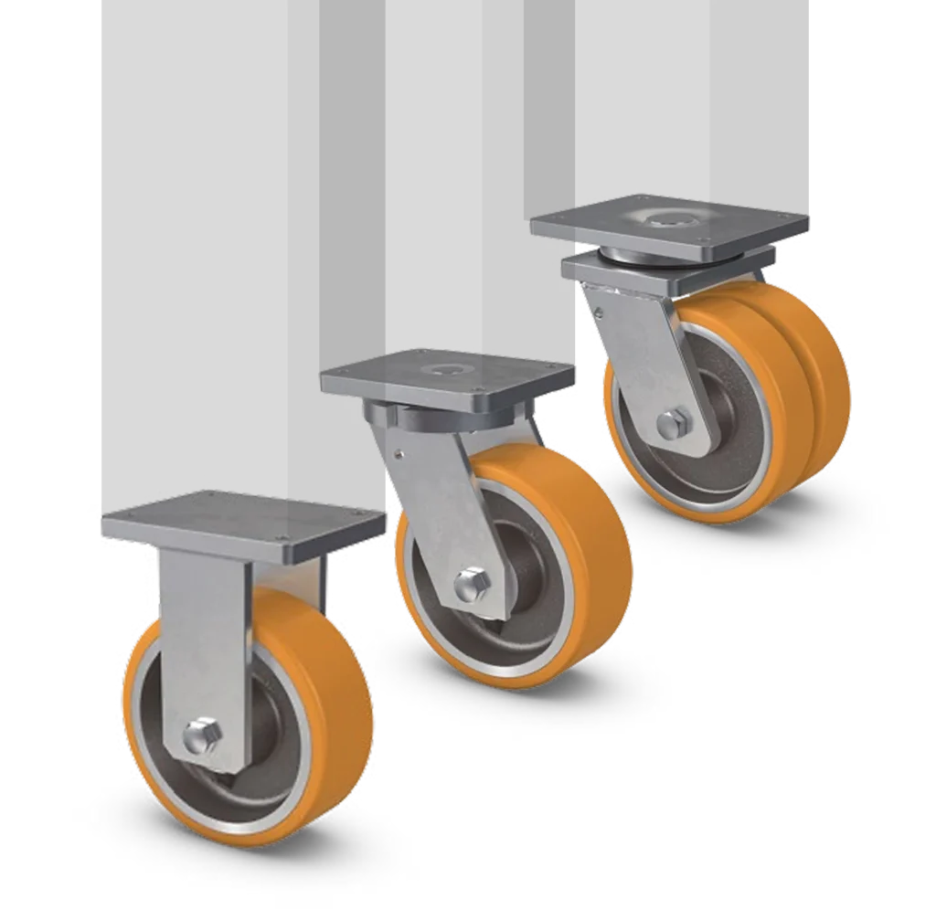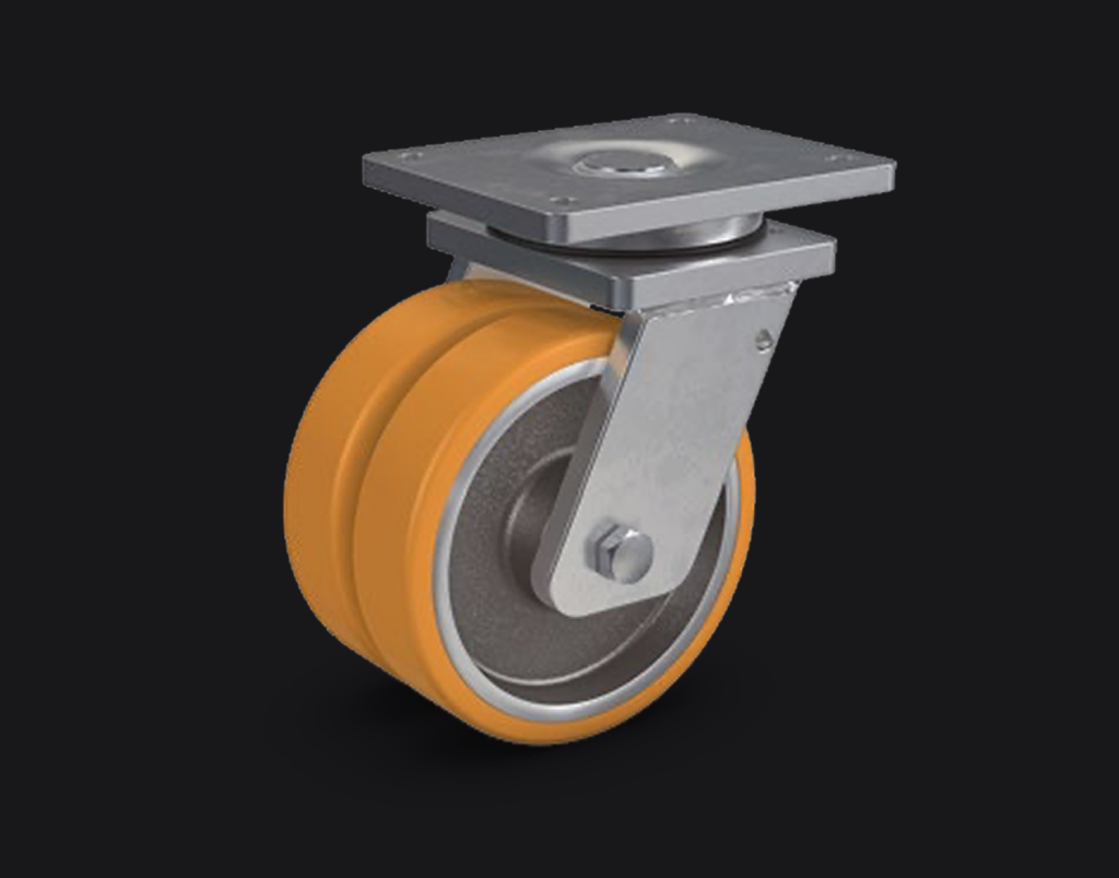 Voor zware toepassingen biedt MK Industrial Wheels onder andere PEVOPUR heavy-duty zwenkwielen, ontwikkeld voor intensief gebruik onder hoge belasting.